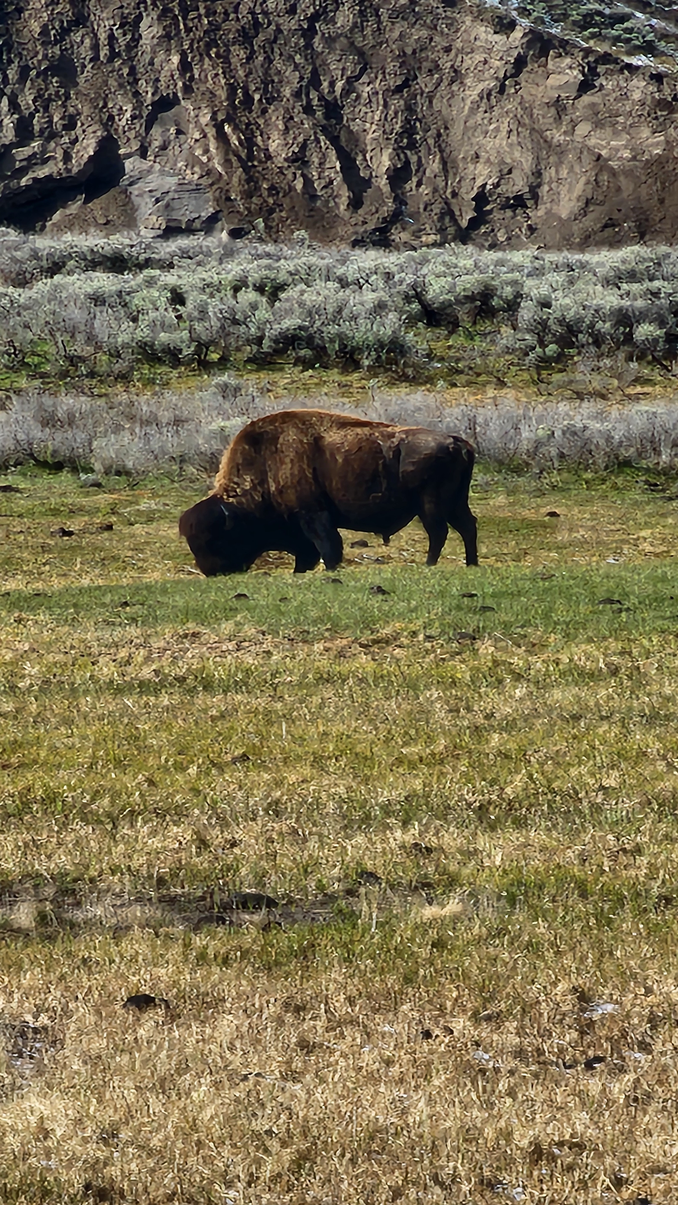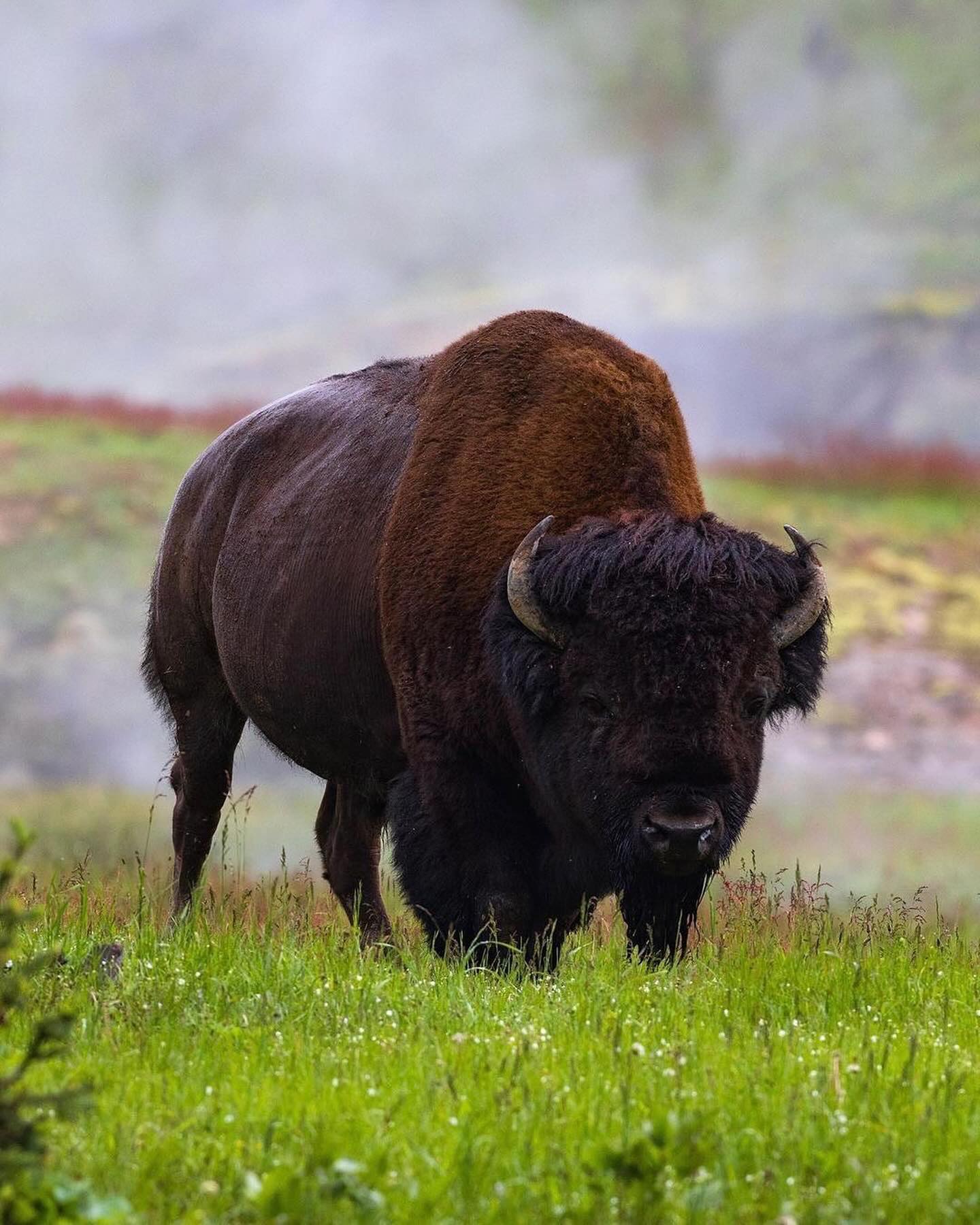 The largest land mammals in North America, roam freely throughout Yellowstone National Park